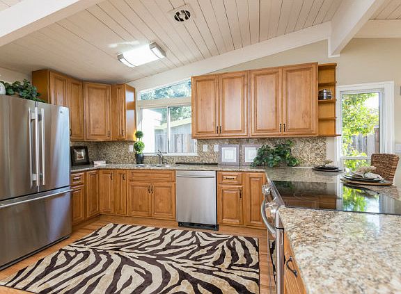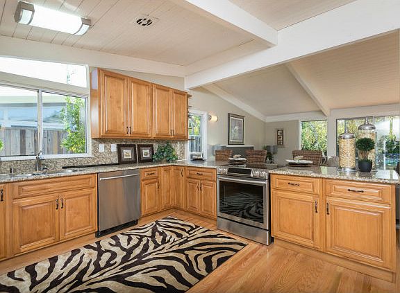 Gorgeous remodel! New granite kitchen updated baths dbl pane windows hardwood floors new interior-exterior paint skylights fully finished garage beautiful backyard w/new decks and lots of grass to play! Attached in-law's unit with its own entrance and/or interior access! Prime location--walk to groceries 3 parks new community center, and to top schools: Fairmeadow JLS, bike to Gunn!