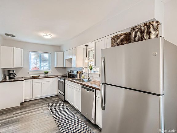 Updated Berkeley home with an Accessory Dwelling Unit (ADU) in the lower level, making this the perfect 'house hack' setup to offset your mortgage. Denver allows an owner-occupant to apply for a short-term rental license, which should be very profitable in this location. Renovated main level kitchen w/ brand new white, shaker cabinets with a large amount of storage space plus rich walnut butcher block countertops & stainless steel appliances. New double-pane windows throughout to save on energy costs & there are plenty of them to fill the home in natural light. Large living room picture window adds curb appeal. There is plenty of character left in the home even having been updated over the years - classic covered front porch for chatting with neighbors as they ride along the street's bike path, crown molding, telephone nook, mail slot, red brick exterior & corner windows in the main bedrooms. There are 2 beds/1bath on the main and 2 beds/1bath in the lower level - all beds conforming and great sizes. The main level primary can fit a king-sized bed. Durable luxury vinyl plank flooring throughout to make maintenance and cleaning easy. The main level bath is fully updated with timeliness white subway tile + updated fixtures and a newer vanity. There are two furnaces so the ADU occupant can control their own temp. There is a very large, oversized 2 car garage with alley access plus 3 off-street parking spaces so plenty of parking. The main level had new central a/c and new whole-home water heater installed in 2021. The laundry room is at the bottom of the stairway before the lockable door to the ADU so it can be community use. New washer/dryer installed in 2022. Zoned U-SU-B1 so an ADU is allowed but do verify your intended use with the City. Large yard w/ artificial turf to conserve water. Main level was rented for $2,000 ($200 discount for mgmt) & basement rented for $1,750 long term w/ all utilities paid by tenants.