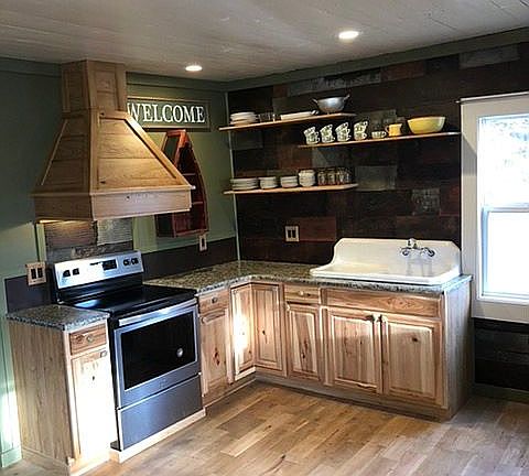 Completely remodeled cabin with new windows, new oak hardwood floors, new bathroom, new electrical service, new plumbing, new hot water heater, new kitchen and a new propane heater. This cabin contains two bedrooms, a full bathroom and a great room. The front porch is enclosed with new oak hardwood floors as well. The property contains over 3 acres, borders a trout stream and is mostly wooded.