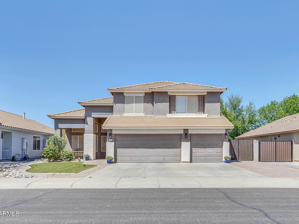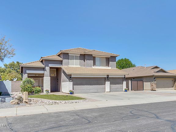 Discover your dream home in the highly sought-after community of Gilbert! This stunning 2-story, 5-bedroom, 3-bathroom home boasts a spacious floor plan with tiled floors in the living areas and wood-look laminate in the bedrooms. The open kitchen features stainless steel appliances, granite counters with bar top, pendant lighting, and tons of cabinet space. The primary suite has a bathroom with dual sinks and separate shower and tub. The backyard oasis features a tiled patio, lagoon-shaped pool and synthetic turf perfect for entertaining family and friends. Come and experience the ultimate in Arizona living!