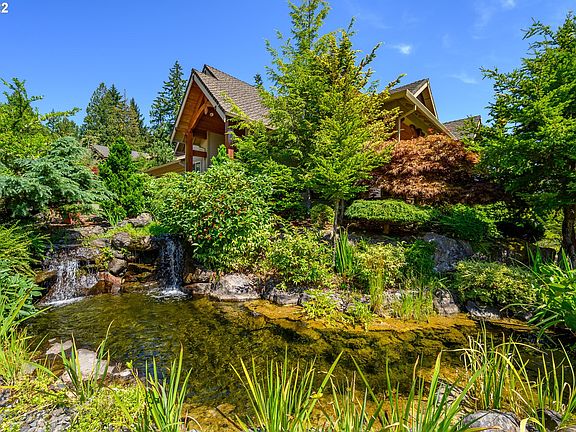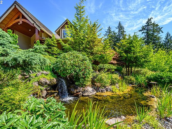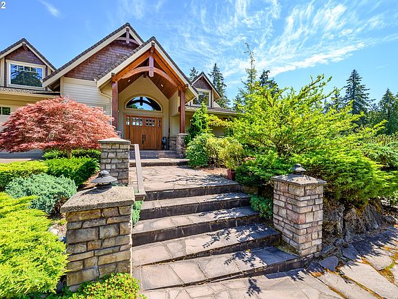 Builder's home with the perfect view of Mt. Hood. This is a high end custom built home; Mortenson beams thru-out, custom office, 2 built in desks, beautiful cabinetry, 3/4" walnut floors thru-out main level, 8' solid fir doors, fir trim. Bonus trusses above garage for storage. Hot tub off master. Sound and security system, 1050 sq ft deck with cable rails for unobstructed Mt. Hood and golf course view. Possible dual living, lower level has kitchenette, laundry, walk out slider. Exquisite Home!