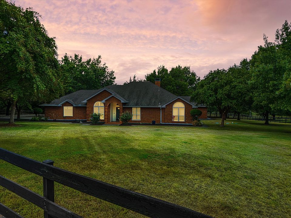 Experience the Serenity of Lake Living! Quintessential meticulously maintained and exceptional custom home, nestled on a sprawling 3.43-acre lot in the coveted Steeple Chase subdivision outside the city limits. This unique property offers an idyllic lifestyle with its direct access to a private neighborhood lake, as well as nearby community barn and horse facilities. This animal-ready haven features a multi-stall barn, tack room, and corral. Fenced and cross-fenced, providing both security and functionality. The open-concept kitchen, adorned with stone-like countertops, seamlessly flows into the oversized living room, which boasts an impressive austin stone fireplace and custom built-ins. Custom cordless shades in living room along backside of home. Wood-like ceramic tile floors add a touch of modern sophistication, enhancing its already charming character. Make Steeplechase your HOME, it’s a place where residents cherish their community and rarely move as it's ONE of a kind gem.