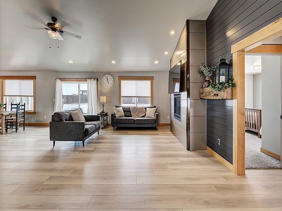 Attention buyers: sellers are willing to help with closing costs or rate buy down! 2,410 sq ft home offers 4 bedrooms, 3 bathrooms- 317+ sq ft of this home is a bonus room upstairs that would be an ideal large 4th bedroom or a rec space already equipped with a closet. The interior features unique touches, including tiled backsplash, granite countertops, warm modern colors, a cozy gas fireplace, shiplap surround as well as rustic barnwood beams as shelves.