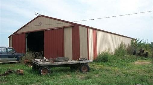 NEW ROOF on house. 5 Acres, private setting, pond, ranch-style home, large screened-in porch, full walk-out basement, 2 Morton buildings: 24 x 36 and 42 x 72, house needs work lots of potential.