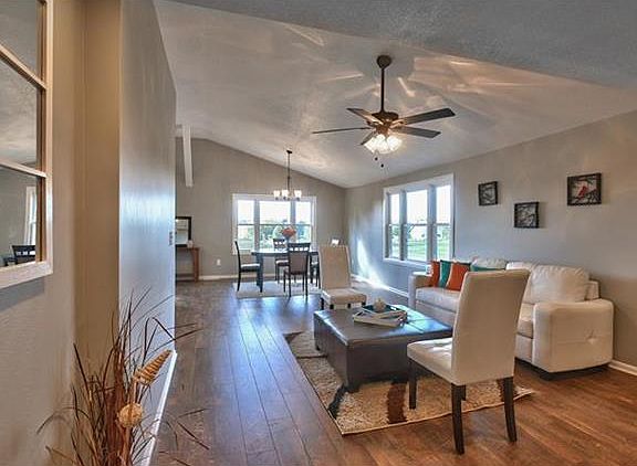 Price Reduced! Stunning open floor plan with vaulted ceiling in great room area. Large island and pantry in the kitchen, with a walk out onto a nice deck to enjoy your tree lined, corner lot on 1.33 acres. During rain or snow enter on the side of the home into a large mudroom/laundry room. Walking into the master you will see two beautifully stained barn wood doors. Behind one is the master en suite bath with two separate sinks and a large tiled shower with a resting seat. Basement partially finished/storage area.