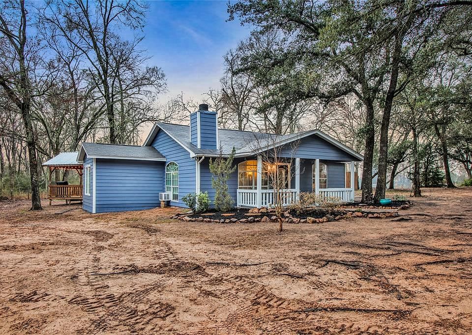 Charming home located on 4.92 unrestricted acres offering a serene landscape and just minutes from Hwy 290 and Hwy 6! This property is next to the Historical Gen. George and Libbie Custer Campsite. The 1675 sq. ft. main home is ready to be enjoyed and includes a beautiful expansive kitchen/dining/living room combination with a wealth of natural light, designer finishes, granite countertops, farm sink, stainless appliances, double ovens, dishwasher, and plentiful storage. The master suite features a walk-in closet, bathroom with shower and vanity. Incredible second bedroom with built in bunk beds and on suite full bath with walk in closet. Back covered deck perfect for entertaining! Mature oak trees and a wooded buffer encapsulate the gorgeous property. Two story barn which includes a workshop area on the first floor and finished storage space on the second floor. Add'l storage shed for tools. RV connections w/power and water. Take a relaxing walk through the forest down to the creek.