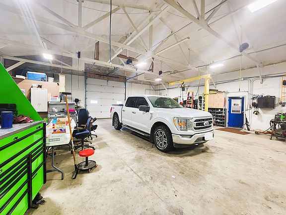 The shop 64x40 has a 12 ft overhead door leading into a heated atmosphere with in-floor heating. The addition to the shop is 44x20 and features 2 offices and a front entry area. This also has in-floor heating.