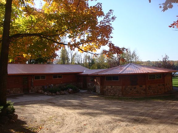Tremendous opportunity to own a unique custom home and beautiful lakeshore at a reasonable price. Tranquil South Sugar Lake with access to Sugar Lake for smaller boats. Level land to lake with open spaces and woods. Stick built extra large workshop/additional garage space which is partially heated. Adorable bunk house with storage below for lake items. Deck with hot tub and perfect view of lake. Original section of home is a yurt which was incorporated seamlessly into the newer addition of the home. This is a truly unique home and a must see!