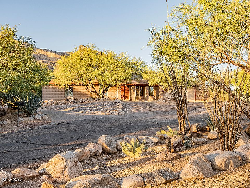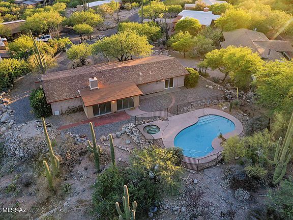 This charming Foothills Clusters home, situated on a Cul-de-Sac lot, has stunning mountain and city views. The backyard, with pool, and front covered patio, are surrounded by open desert space providing for serene outdoor areas. The home features hard floors throughout with a fireplace in the great room. The large Arizona Room allows for additional space to take in those mountain views. Located in District 16(Catalina Foothills) school district and walking distance to Finger Rock trail head. Come take a look!