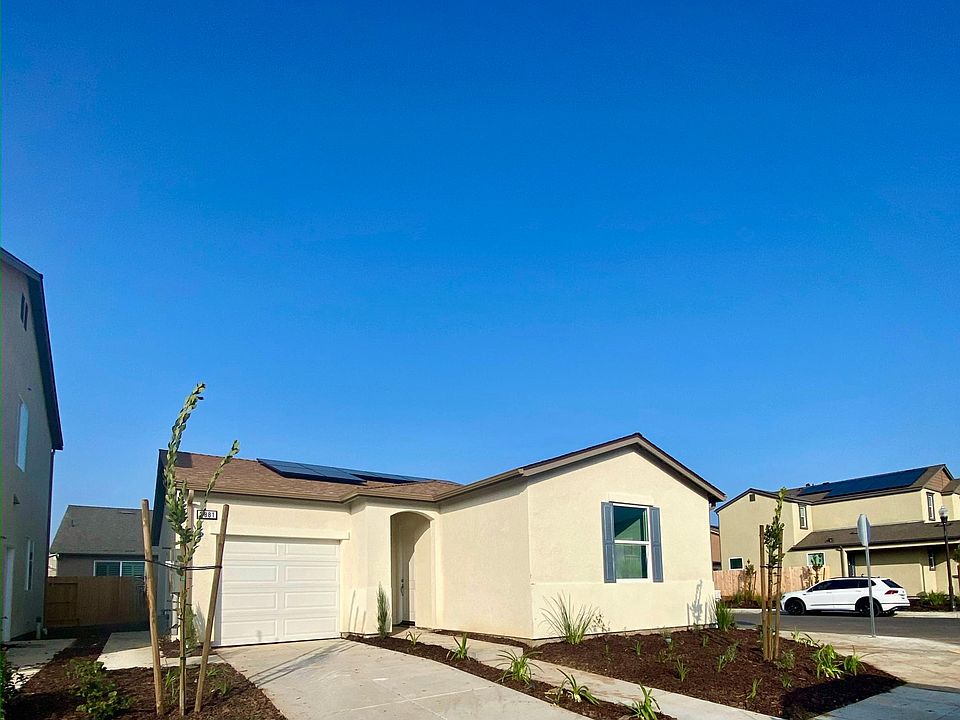 Come rent your new home in this new Wathen-Castanos house! SOLAR POWER INCLUDED! Kitchen features brand new appliances, including a new refrigerator, stove top, microwave, and dishwasher. Kitchen also features a walk in pantry and garage door access for easy grocery unloading. Large center island in kitchen with stainless steel sink and space for seating. Large area for dinning table. Master bedroom is located off of the back living room and guest bedroom is located in west wing of house. Walk in closet In master bedroom. Luxurious tile flooring with carpeted bedrooms. Two hallway closets for extra space. Ceiling fans in both bedrooms. Two full bathrooms with one attached to master bedroom. Spacious Laundry room with Washer and Dryer hookups. Cozy Backyard. Covered one car garage with full length driveway. Corner lot for lots of street parking. Low maintenance landscaping in front and backyard. Built in watering system included. Clovis Community in CUSD district. The community has a children's park and access to walking trails. Renter is responsible for water, trash, utilities and energy bill. No smoking in house is permitted. Pets are allowed with 3 pet maximum.