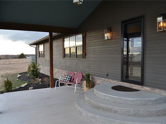 Dreaming of a house on a hill? Here is a beautifully remodeled house on 5 acres. Take in the awesome view of Shawnee from your new covered timber-framed front porch with cathedral ceiling! Enjoy outdoor country living on the new concrete patios with adjoining sidewalks, or grill dinner and entertain on the covered back deck. New roof, gutters, paint, stonework and concrete last fall, 2021. Come inside to a modern farmhouse-style interior with new doors, luxury vinyl plank flooring, paint, light fixtures and ceiling fans. The large dining room has a built-in storage hutch and breakfast bar nearby for extra seating at family gatherings. The backyard has workshop outbuildings and storage shelter. Out of city limits, but oh so close to mall shopping and restaurants! Don't miss your chance of home ownership! Deadline for offers is Saturday, 3/20/2022 at 5:00 pm.