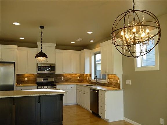 Hurry in for this beautiful 3 bedroom, 2 bath with an open floor plan. Hardwood floors, modern finishes and lighting throughout. This home boasts a built-in desk area, gas fireplace in the living room and a large island in the kitchen for easy entertaining. Cozy carpet in the living and bedrooms. S/T Paid NO PETS 6 Month Lease Landscaping included Renter's Insurance required