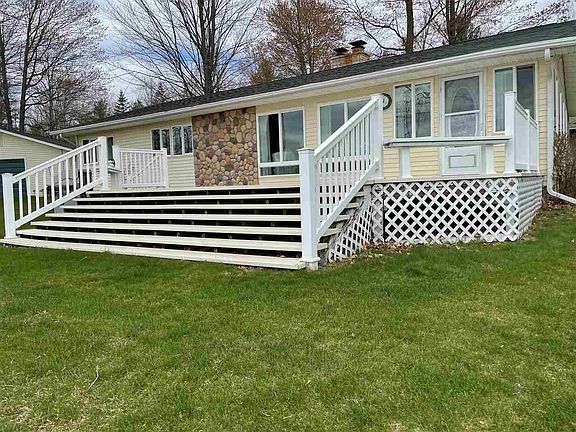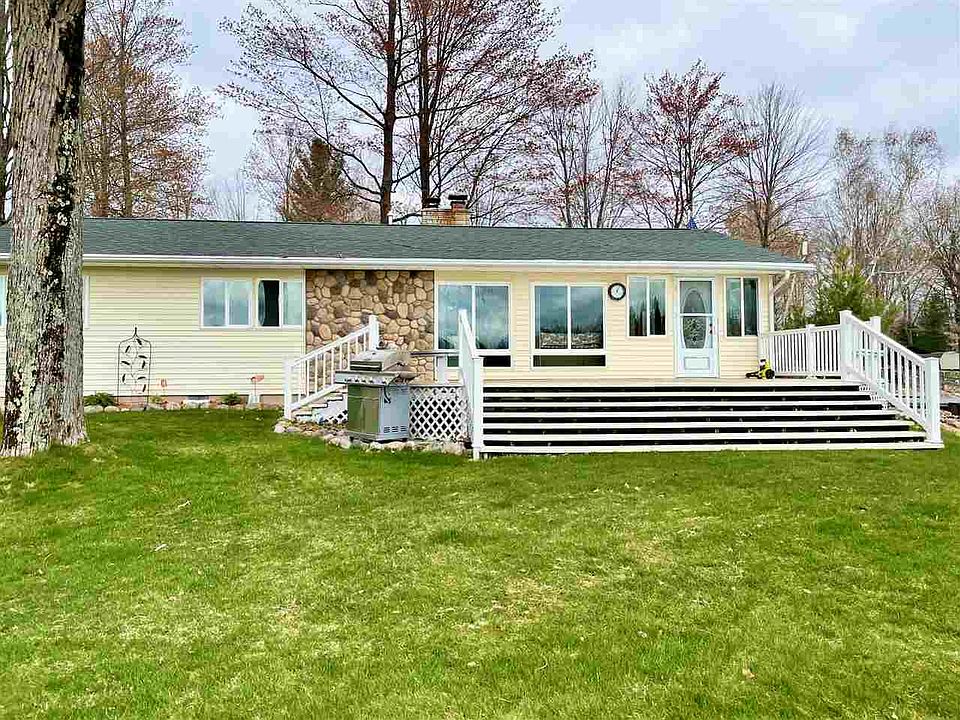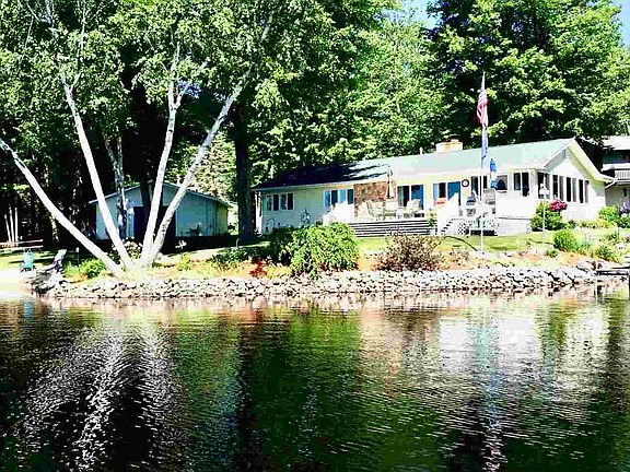 Amazing Waterfront Home on Secord Lake. Hard to find 175 ft of sand bottom waterfront on the main lake. Set back a bit to buffer the sound. Set up a bit for privacy. Beautiful views abound from this 3 bedroom 2 bath home on a double lot. Room to roam on .68 of an acre, nicely landscaped including a garden area. Large open living room with windows overlooking the water, a Lopi wood stove insert for those chilly evenings and a nice bar area perfect for entertaining. Plenty of kitchen cabinetry with a dining area open to the living room. Forced air furnace with A/C and water purification system. Well insulated with NASA Blanket insulation. Knotty pine interior for that up-north vibe perfect for a full time or weekend get-away. Permanent dock for convenience tucked on the side lot. 2.5 car garage for the toys and shed for extra storage. Pole barn available separately on a lot across the street. Great family fun available with the purchase of this home. Just 2.5 hours from the Detroit area.