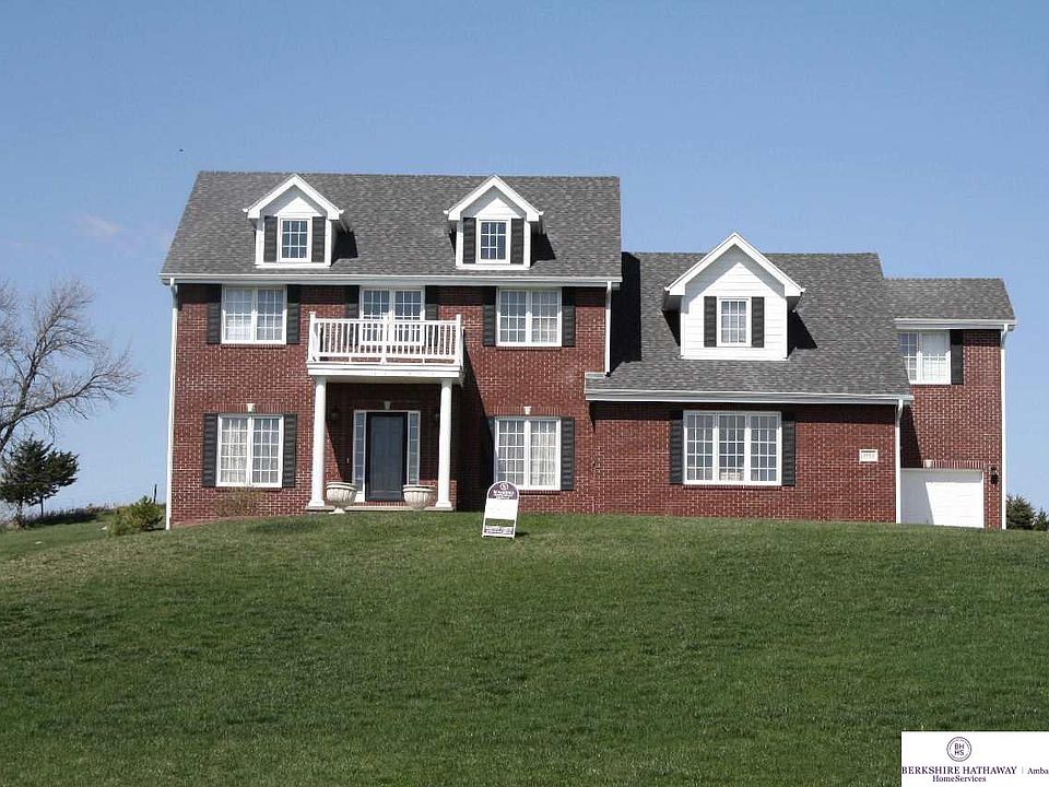 Sandy Beck, M: 402-210-3845, sandy.beck@bhhsamb.com, www.bhhsamb.com/sandy.beck - Located in a quiet acreage community on 3.4 acres w/ an incredible view, this custom built home features HUGE 4 car garage, grand 2-story entry, lg kitchen w/ beautiful painted trim & cabinets & hardwood flooring open to fam rm w/fireplace. The den w/ French doors, & formal dining rm complete main floor package. The 2nd floor has gorgeous master suite w/sitting rm w/ 2nd fireplace & luxurious master bath; as well as 3 other spacious bedrooms all with walk-in closets. Plus room to expand in LL
