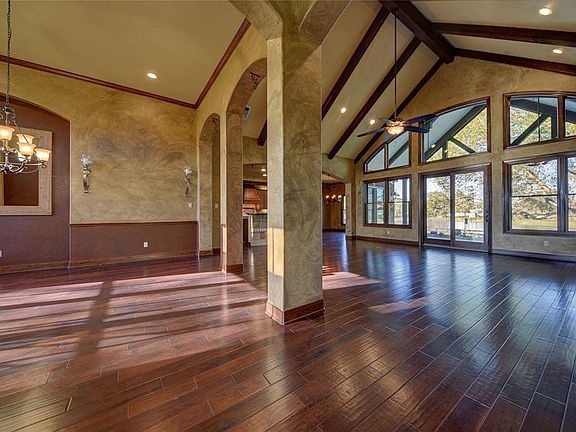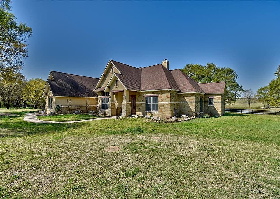 DREAM HOME! This must see 10+ acre gem is just a few minutes outside of Bellville. No detail was spared in the construction of this custom built beauty. A stucco and brick exterior gives way to an interior of gorgeous hardwood floors, soaring ceilings with exposed beam work, and a terrific view of the pond from most of the rooms in the house. Custom windows and doors. Office entry with transom accent glass. Granite countertops throughout. Travertine tile. Viking Appliances. See the master shower with glass blocks, double shower head and seating. Each bedroom has a walk in closet. Massive mudroom and laundry with tons of storage. Follow the wood stairs up to the game room with a view of the pond featuring a Viking fridge and full bath. Media room adjacent to the game room with a walk-in attic space for additional storage. Enjoy the back patio for wildlife viewing and recently rebuilt pier for fishing. 3 car oversized garage. Water softener.