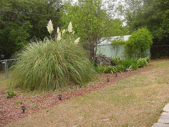 Three bedroom, two bath, two car gargage with a back yard that welcomes you with pond and waterfall. Cahin link fence, fruit trees and shrubs. Move in ready. All appliances, built in microwave, washer and dryer, inside laundry with cabinets, extra cabinets in the garage with work bench. Four ceiling fans, nice vinyl window lanai. Home ready for central vacuum, security system, ceramic tile floors. Need more land? The lot next door is also available. Will make a deal. One year home warranty to buyrer at the time of closing.