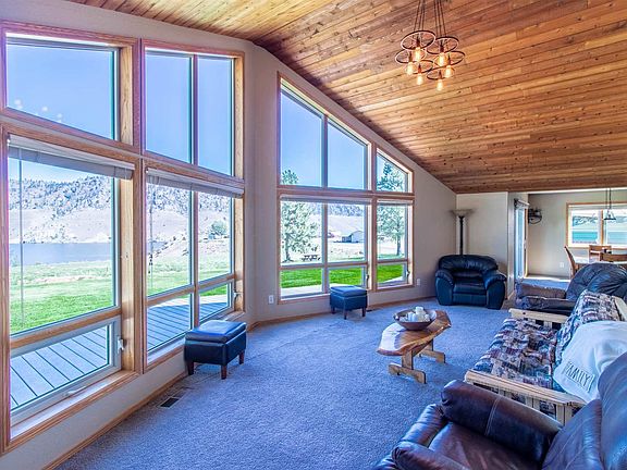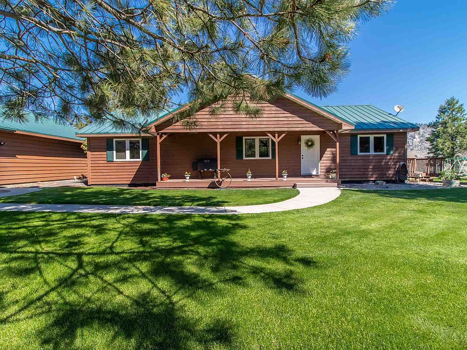 Enjoy a spectacular, unobstructed view of Lake Roosevelt from the windows of this lovely 2 bed, 2 bath home on over an acre! This comfortable house has both a living room and a cozy family room with a wet bar and gas stove. Walk out of the dining room onto the deck to enjoy the large yard, fire pit, and horseshoes - perfect for entertaining! And don't worry about all that grass; sprinkler system is in and Seller is leaving the riding lawn mower for you! Enjoy beautiful views of the bluffs from your front porch and watch for wildlife including bighorn sheep, elk, and and deer. Two RV parking spaces with 30 amp and septic hook-up. Detached two car garage plus a carport. Less than a minute drive to the Lincoln boat launch. Clean and move-in ready. You won't want to miss this rare opportunity!