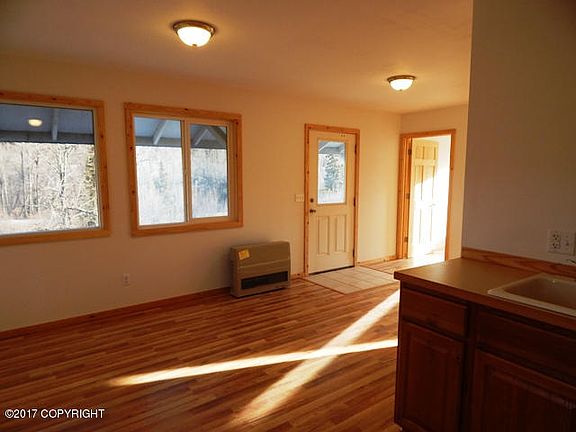 This Great Cabin has been completely remodeled and shines like new! It was moved to this location and put on a New Foundation and hooked up to a New Well and Septic. There is even a small pond to attract the Moose and Ducks. The Anchor River and Thousands of Acres of State Land are right across the street. Owner financing available.