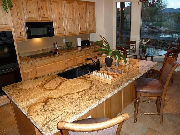 This is a wonderful home for entertaining with mountain views from every room. Kitchen is open to the living and dining areas with chiseled slab, granite counter tops and Alder cabinetry. The elevated reverse negative edge Pebble Tec dive pool with waterfalls can be viewed from the kitchen and living areas. The outdoor entertaining area boasts a swim up bar, therapy jets, barbecue, fire pit and large Gazebo with room for outdoor dining. Attached separate entry Casita is ideal for visiting guests. Just under an acre of land with RV parking and gate and no HOAs. Trail that is adjacent to property leads 2 1/2 miles north to The Spur Cross Conservation Area where you will enjoy equestrian, hiking and mountain biking trails near The Tonto Forest.