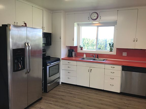 Charming and bright house with 1024 sq feet. Built in 1964 and recently renovated with new roof, windows, paint, flooring, updated electrical and plumbing. Plus an open floor plan and brand new fully renovated bathroom. Stainless steel appliances in the kitchen and washer/dryer included. Large private landscaped yard with an outstanding Mt. Adams view. Attached garage for toys and storage with two additional outbuildings. This is a rare opportunity to find a great house with a beautiful lot.