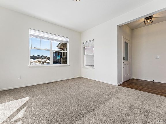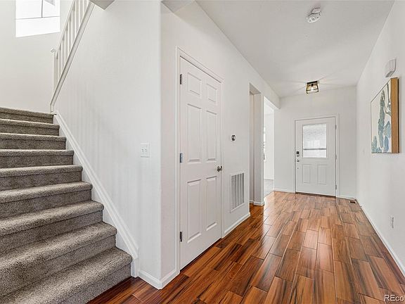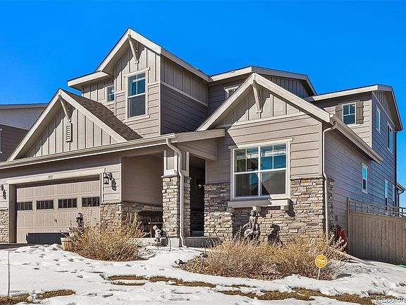 Welcome home to this gorgeous 5 bed 4 bathroom Castle Rock home nestled into the foothills and perched above the valley with stunning mountain views of the front range. Situated on a corner lot, this home is conveniently located close to shops, restaurants, trails, Quarry Mesa Open Space, and Rhyolite Regional Park. The open floorplan, vaulted ceilings, and tons of large windows and natural light makes for a warm inviting space with endless room for entertaining! Custom wooden beams, a shiplap accent wall, and electric fireplace complete the spacious living room. The chef's kitchen is complete with granite countertops, walk-in pantry, and a large island perfect for seating. Bonus room for office or den off the entry, powder room, and a large mud room make up the remainder of the first floor. Enjoy the gorgeous views every day and take in the sunset on the large deck off the kitchen. Updates include new carpet, interior paint, light fixtures, and wood plank tile flooring on both the main level and in the basement. Head upstairs where you will find 4 bedrooms, one of which has been converted from a loft space and can easily be converted back. The primary is situated in the corner of the home with large south and west-facing windows, boasting gorgeous mountain views. The 3/4 primary bathroom has dual sinks, large walk-in closet, toilet closet, and walk-in shower to complete the ensuite oasis. Laundry is also conveniently located on the upper level. Head downstairs to the fully finished walk-out basement, where you will find an additional bedroom and full kitchen. Quartz countertops, a large island, walk-in pantry/storage room, and gas fireplace allow for a warm inviting space with its own separate entrance so it can be used as a mother-in-law suite or rental. The oversized 3 car tandem garage, newly poured concrete patio out back, and large back yard that extends along the north side of the home allows for great outdoor living and extra storage.