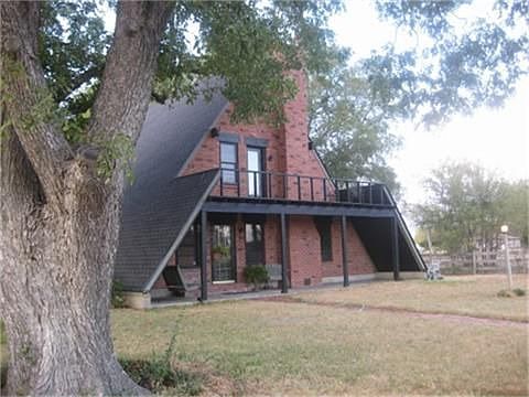 Brick A-Frame home - 45 minutes south of Dallas - 3 miles off of I-45 in country on FM 1603- 20 minute drive from Richland Chambers or Cedar Creek Lake. Open concept living, dining, and kitchen. Wood burning fireplace with central heat and air. 2 car detached covered carport. Living area has vaulted ceiling, hardwood floors, and a catwalk out to the front balcony. Rich barnwood accentuates the living area and stairway. Bedrooms have beige carpet. Master bedroom on second floor. Kitchen, laundry room, and baths have tile flooring and profestional grade, stainless steel appliances and sink. Large, covered back patio with 8 person hot tub and built-in brick smoker and cooking grill. Short walkway out to swimming pool with rock waterfall and diving rock. Gameroom opens out to swimming pool and includes refrigerator, sink, and pool table.Large livestock tank at back of property.A must see! Call for appointment and tour.Additional property info: http://www.forsalebyowner.com/listing/4-bed-Single-Family-home-for-sale-by-owner-3883-FM-1603/23356666?provider_id=28079