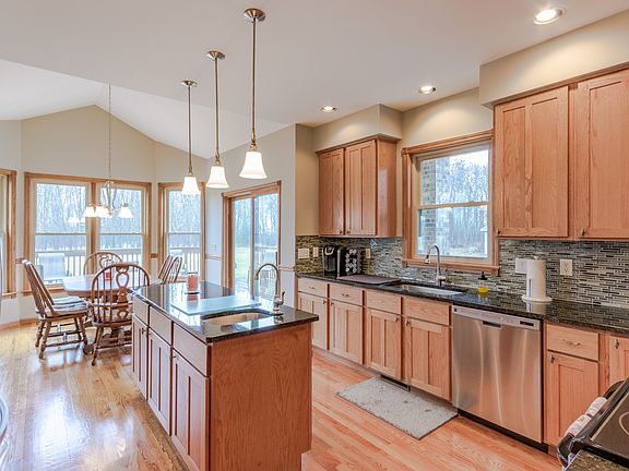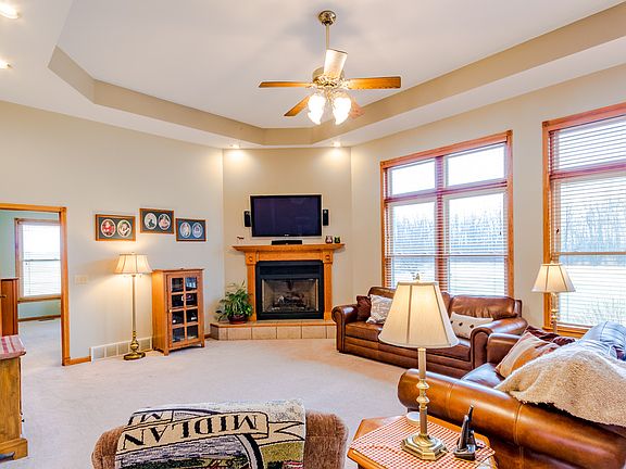 Country Charmer! This lovely Larkin Twp home sits on 10 acres (more land is available)! A main floor master, four full baths, five bedrooms plus a den and a terrific finished lower level provides room for everyone. The owners have replaced the roof in 2014 and windows in 2015. The spacious kitchen has a large work island complete with granite and a prep sink! Country living can mean lots of "toys" and the large pole barn can accommodate them all. Don't miss this one!