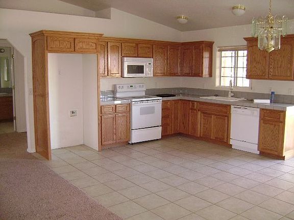 Beautiful 3BR, 2BA home. Split floor plan, ceramic tile, pot shelves, vaulted ceiling in livingroom, jacuzzi tub in master bath, easy care landscape, front and rear covered patios, panoramic views.
