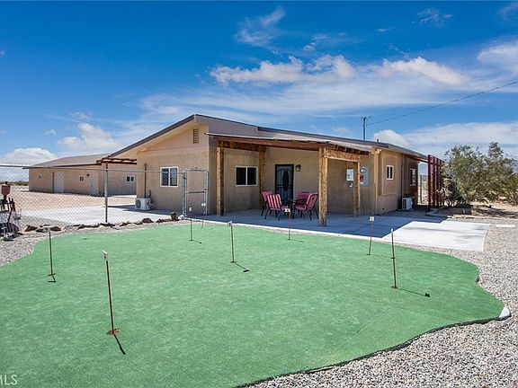 WONDER VALLEY GEAR HEAD DREAM HOME: Spacious 2-Bed, 2-Bath home, complete with fenced yard, and two shaded porches, one on the east side and one on the west side of house for morning, afternoon and early evening shade & a PERMITTED 1800 sq ft Warehouse. Fresh water from your own well. Built by a contractor for personal use – no expense spared. Your very own moto mania, storage galore, forever home. Venture into your warehouse for storage as a contractor or fabricator or keep your vehicles and bikes protected. There are a total of 5 Buildings on this property in great shape for living, working and storage, including a beautifully remodeled and updated home, a splendiferous GIANT WAREHOUSE, a modest 10' x 12' laundry room/craft room and two very handsome 10' x 12' storage structures, not including the pumphouse! Need extra storage? We got you covered, literally. 5-BIG ACRES (would you expect anything less – hell no). We got a 20' x 20' concrete pad behind garage and another 25' x 20' concrete pad adjacent to house, just because we can. Maybe you like working in the sand – we don’t. 200 amp upgraded electrical service. Warehouse has a100 amp sub panel with the availability of 220v for a welder or RV hookup. In addition, home has 22 Solar Panels. Two ductless mini-splits to stay cool indoors. When you get tired of wandering through your buildings, relax by improving your game on the putting green or shooting hoops on your own basketball court. Rurally located away from Amboy Road near the scenic Bullion Mountains, but on a newly paved road for smooth sailing to your front door. Close to Joshua Tree National Park. Closer to heaven.