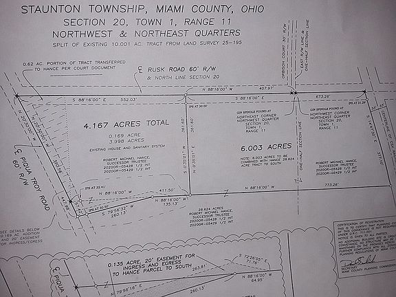 Welcome home to this beautiful 4 bedroom 2.5 bath brick ranch situated on over 4 acres with over 2800 sq ft in desirable Miami East school district. This home has been professionally remodeled from top to bottom. Country view can be seen from every room with lots of natural sunlight. Large family room and living room both with wood burning fireplaces. Gorgeous over sized updated kitchen with granite countertops, new appliances, breakfast area with separate dining room for family gatherings. Master bedroom with full bath that offers his and hers sinks, newly tiled shower and large closet area. Each additional bedrooms are over sized with lots of closet space. 2nd full bath is completely new with tub/shower combo. 4th bedroom has built in shelves which could also be used as office space. Large utility room also includes 1/2 bath. Basement offers lots of storage space. New flooring,carpet,paint and lighting throughout are just a few of the many updates!