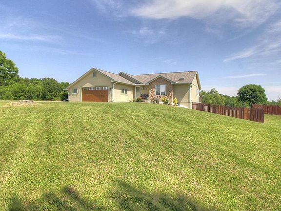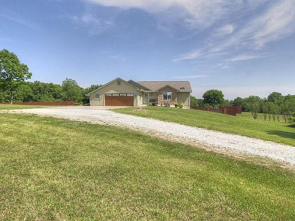 HOME WITH ACREAGE! Gorgeous three-bedroom, two bathroom ranch-style home sits on 6.376 beautiful acres, including a massive back deck, overlooking a spacious fenced-in yard and surrounded by plenty of trees and natural views, making it the perfect place to escape to. Great room features vaulted ceilings and a handsome fireplace. Master bedroom walks out to back deck and includes tons of natural light and access to private master bathroom, complete with double vanity, skylight and separate shower and tub.