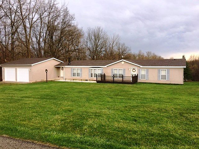 1742 sq ft 3 bedroom 2.5 bath manufactured home, with 24x32 attached garage, on a fantastic 1.5 A river lot. The house sits on a high river bank which has been cleared for recreational use. Amenities include a stone hearth fireplace in family room, oak kitchen with large island, ceramic counter top, and thermopane bay window. Many improvements have been done since 2010 including, roof, furnace, water softener, garage, 5"well, dual septic unit, skylights and central air. Large 2-tier deck with 654 sq ft of entertaining space. Make sure to check out the river view pictures!