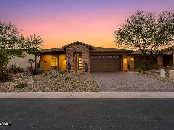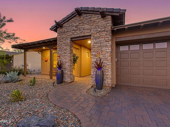 This beautifully remodeled Shea-built Cypress model comes fully furnished and includes a golf cart, making it truly move-in ready. Step outside to your custom-designed System pool and spa featuring a travertine surround, water features, and a spill-edge design—perfect for relaxing or entertaining while enjoying breathtaking Arizona sunsets.