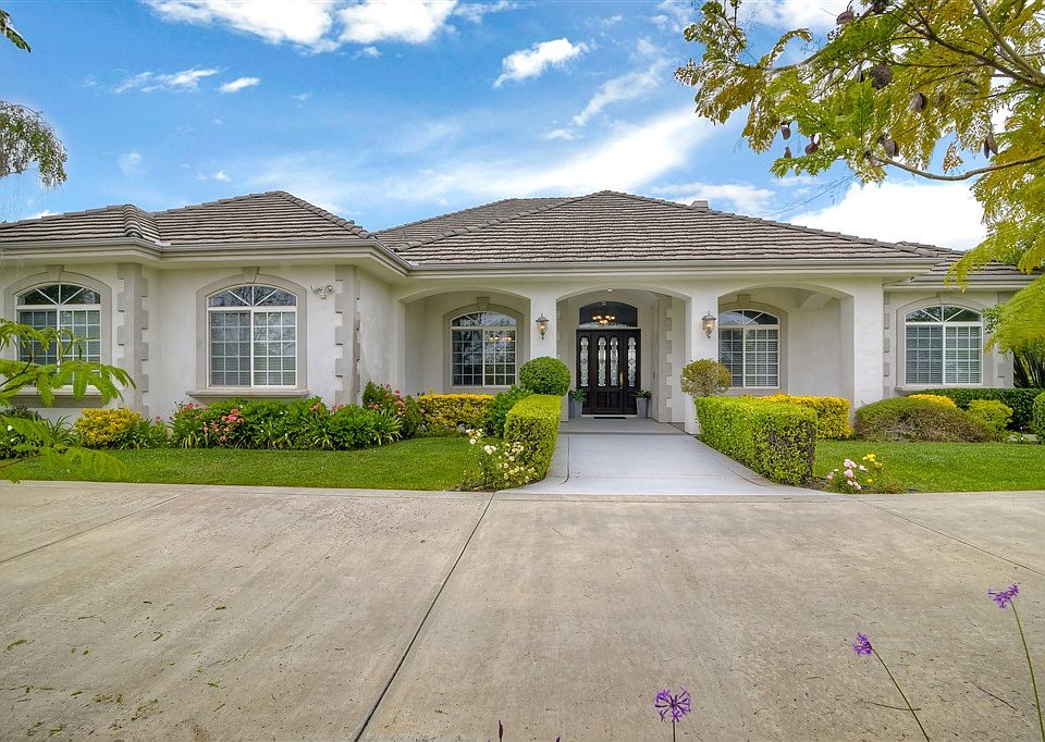 Huge Price Improvement!! A Spectacular Single story home awaits you with Breathtaking Views and an abundance of Open Space. This is an immaculate home built with a spacious floorplan. Offering High Ceilings, Large Rooms, Viking Appliances, Elegant Fixtures and Details. Enjoy any one of the Patios overlooking the Saltwater Pool or grounds as well as the built-in BBQ and Fireplace. This property offers a 780sq ft 1-bedroom Guest house complete with Kitchen & indoor laundry. Please see supplement for more... Upon entry you will notice the Flow of this house! Gorgeous on the inside and beautiful outside. High ceilings, Crown Molding, Wood Floors, LED Recessed lighting, Private yet open Dining Room, Large Chef's Kitchen with Viking Appliances and Double Oven, Granite Counters, Center Island and plenty of cupboard space. A full laundry room/craft room with even more cabinets that leads to the exterior of the home. The Master retreat is located by itself on one side of the home with a fireplace, a very large en-suite and closet complete with built in shelving. All with a private entrance to the backyard. Three Spacious bedrooms are located on the other side of the home. The back of the house opens via multiple Sliders to the exterior patio and pool area. There is energy efficient heating for the pool, a brand new Blaze BBQ grill, exterior Fireplace area for entertaining. Engineered decks are located on the opposite side of the pool and overlook either the pool or flat grounds below. Multiple fruit trees are on the property including Lemon, Tangerine, Avocado, WA Navel Oranges, Peaches & Cherimoya. Sun Shades are on the home for those hot days, Rain Gutters are installed and the home has enclosed eves. Also on the property is a beautiful 780 sq ft Guest House with finishes just as nice as the main home. High Ceilings, Large bedroom, Full Kitchen and Bath and a laundry room - perfect for Guests or Tenant.