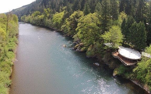 Incredible custom home with expansive views of the world famous McKenzie River. This architectural wonder is supported by a highly engineered system of steel beams high above the river bank. The master suite has a private entrance separate from main living and has a covered deck. Large main deck has stunning views of river, perfect for entertaining. This unique property boasts 700 ft of majestic McKenzie River frontage.