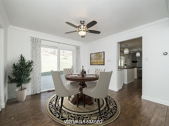 This four-bedroom, two-and-a-half-bathroom house sits on approximately 3.4 acres, offering a serene setting. The home features an open, spacious layout with abundant natural light throughout. The welcoming entryway leads to hardwood floors that extend into open living areas.