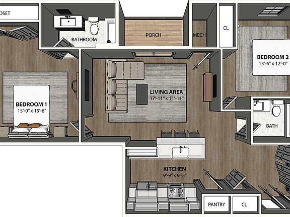 - Bedrooms: 2