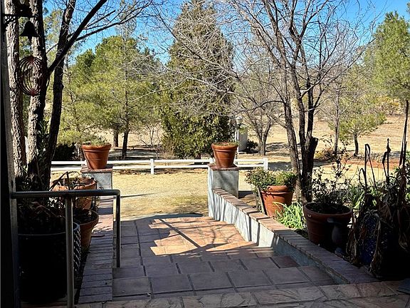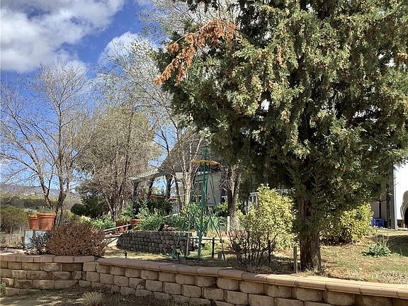 This fully fenced and gated 5 acre parcel (two parcels each 2.5 acres) is nestled in a quiet neighborhood. The moment you enter the property it just feels like home. Well maintained grounds, flat and useable and a winding driveway leads to the 3 bedroom 2 bath well maintained home with lots of mature landscaping Terraced flower beds lead from the driveway up to a very large, covered front porch, geat for summer entertaining or watching the snow fall in winter. This home features livingroom, family room. Split floor plan with large primarysuit at one end and two bedrooms with guest bathroom at the other end.Nice kitchen with island and walkin pantry. Like new appliances ( go with the house). Large dining area between kitchen and livingroom. Separate laundry room with door to outside(washer and dryer not included) Large cement patio at back of house, great for summer barbecues. Well pump house and large 2,000 gallon water tank, + 2,500 gallon water storage tank for fire protection. LARGE Metal workshop( buyer to verify square footage).with two roll up doors. Work bench. Out behind the workshop is a tractor barn.Tactors not included. A Fifthwheel Trailer with pop out, Ramada like cover, was used as a guesthouse for overflow guests. A nice fully fenced orchard and garden area. There is a separate area down in front of the house for friends and family gatherings, beautiful water fountain. Pergola with picnic table. The property is well kept. Sprinkled with mature trees. This is truely a MUST SEE property. Sold in present condition.