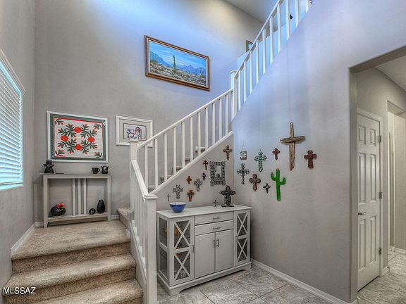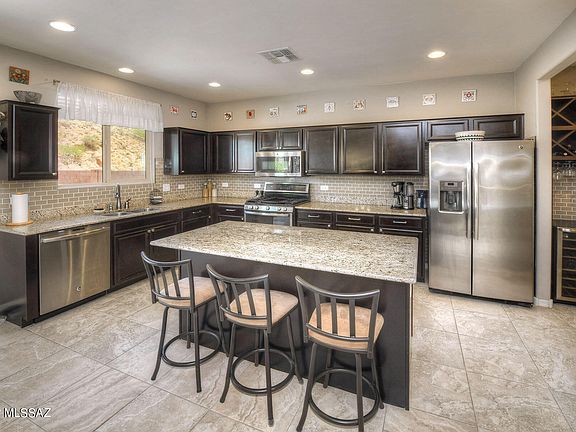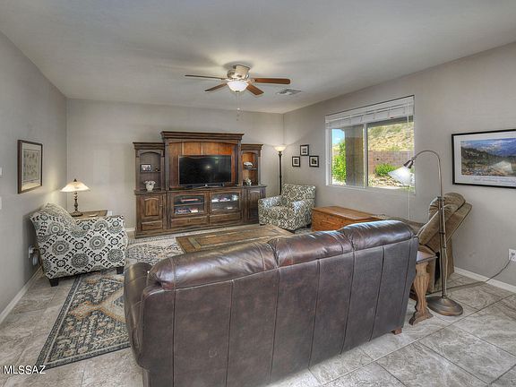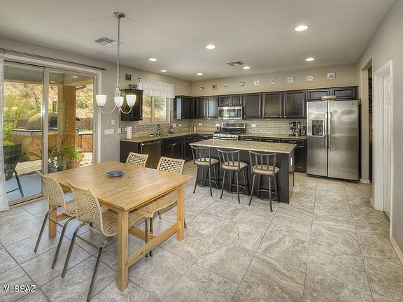 Beautiful 4 bedroom w/loft, 2-story home located in Eagle Crest Ranch/Saddlebrooke. This contemporary style home has awesome mountain views. Home has great room with separate dining. Kitchen has granite counter-tops, SS appliances, double oven, large island and wine cooler. Upstairs primary bedroom has extra window to view the mountains. Laundry room is upstairs along with all 4 bedrooms. Backyard has a solar heated, pebble tech pool with water feature, oversized covered patio, many different fruit trees and brick pathways with lighting. Bring your dough and fixings and make your own pizza in the outdoor wood burning oven that is a Forno Bravo with a 36'' cooking deck. Attached is seating for 4. Home backs up to vacant land for added privacy. A Must See!