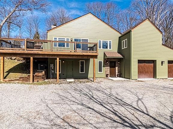 Nestled on a private 1.7 acre lot in Richland Township, this 4 bedroom home is bright and spacious. Recently renovated and loaded with character, the large open floor plan is well suited for family fun and entertaining. From the vaulted ceiling and exposed beams, to the expansive decks and many thoughtful architectural details, this home exudes a warm and relaxing atmosphere. The well appointed kitchen is sure to please with granite countertops, ample cabinet space and stainless appliances. Also featured on the main level is a great room with stone fireplace, dining room, 3 bedrooms, full bath with custom shower and laundry room. The upstairs loft overlooks the main living area and leads to the primary bedroom with skylights and luxurious en suite. The lower level offers a large family room and separate space with flexibility to be an exercise room, office or study space. This home strikes the perfect balance for an active lifestyle and tranquility.