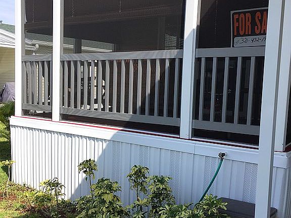Beautiful double wide home 2017) in the great Maplewood Village, a safe and clean place to live. Tons of amenities including Pool, Fishing Lake, shuffleboard and Clubhouse included in Fees. Fully furnished with an open floor plan and a gourmet kitchen with top of the line Appliances. Master bedroom has 2 walk in closets. Very roomy. Laundry inside. Vinyl flooring throughout. Nice screened in porch. Covered carport. Shed with lawnmower included.Backed up to a wooded area. Great location. Very close to Cocoa Beach, Airport, Space Center and Orlando Theme Parks. Watch the rocket launch from your front yard. Fully furnished. Bring your toothbrush. Monthly lot rent $ 530.00 incl. trash and all amenities.