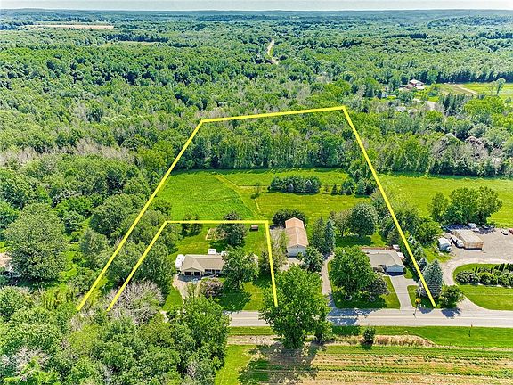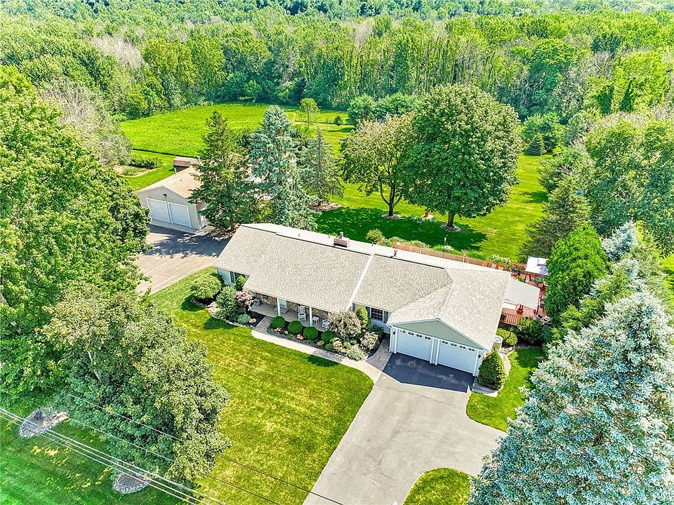 IMPRESSIVE SPRAWLING RANCH! Gorgeous 10+ Acres! Meticulous care & pride! MASSIVE MECHANICS BARN/GARAGE- 4 generous spaces w/heat/water/electric &NEW ROOF (possibilities for various hobbies, careers or animals!) UPDATED EAT-IN KIT w/hickory cabinetry, solid surf counters & Newer Appls! Large Formal dining & spacious living room! 2 gas frplcs! HARD FLOORS THROUGHOUT MOST! 1st FLR LNDRY! BEAUTIFULLY UPDATED MAIN BATH w/heated flrs, a jacuzzi tub & a luxury-oversized tiled shower w/body jets! SPACIOUS, BRIGHT FAMILY RM W/Walls of windows providing panoramic views of backyard & sunrises! TRUE WALK-OUT BSMT finished (indicated in sqft) with a BR, multiple other rec. rooms & full bath! This lower level is a perfect retreat for extended family/guests or possible an in-law! IN-GROUND POOL surrounded by private patio & deck! Convenient location of 441 for easy commutes & less than 5 miles to grocery store! Centrally located only 20 minutes from City of Rochester & Lake Ontario or 30 minutes to Canandaigua Lake! PERMANENT GENERATOR 2018, All NEWER ROOFING (barn & house)! NEW BOILER 2017! Central Air! SQFT of 3564 includes fin W/O bsmt. 1st flr is 2064 & apx. 1500 sqft in fin bsmt per owner.
