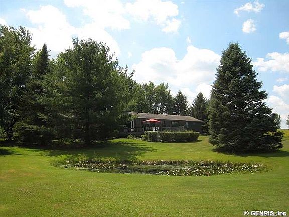 Country ranch home on a total of 4.6+/- acres with pond! Over 1,600 square feet on one floor! Recently updated kitchen with custom cabinetry, solid surface counter tops, heated ceramic tile flooring, & high end appliances. Living/dining area with hardwood floors, vaulted ceiling, propane gas fireplace & sliding glass door leading out to the rear deck, patio & aboveground pool. Sunken family room with a wall of windows & skylights for natural light! 1st floor Master Bedroom with private bathroom. Two additional bedrooms & full bathroom. Detached 2-car garage, storage shed & blacktop driveway!