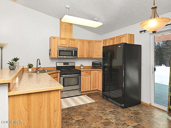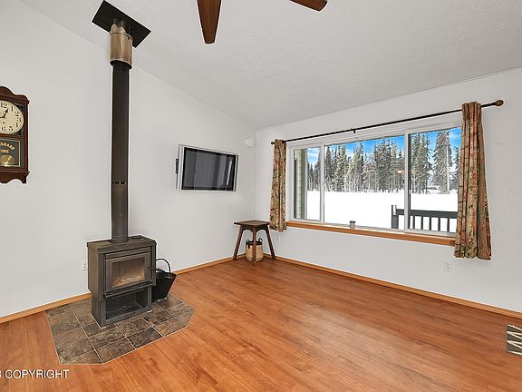 PERFECT STARTER OR FISHERMAN'S PLACE! Spacious 896 sf garage can fit 2 Alaskan sized rigs PLUS your side x side, 4-wheeler, riding lawn mower & FISHING GEAR! Poured concrete foundation w/IN-FLOOR radiant gas heat & 5 STAR+ energy rating! Tidy 2 bed home w/arctic entry & full bath. Washer & dryer stay! Lots of parking, garden, apple trees, flower beds, patio & HUGE Custom steel fire pit/fireplace