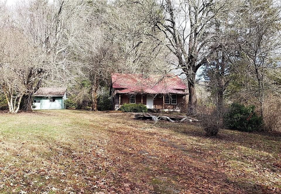 1918 Cabin in need of serious work. No restrictions. Very picturesque with a cool cabin look, this home was at one time very much loved. Mostly level lot with garden areas and a mature forest behind the house. Septic and well are in place. Set back from the road for privacy. Detached single car garage with workshop. Another garden shed near house. House built close to ground.