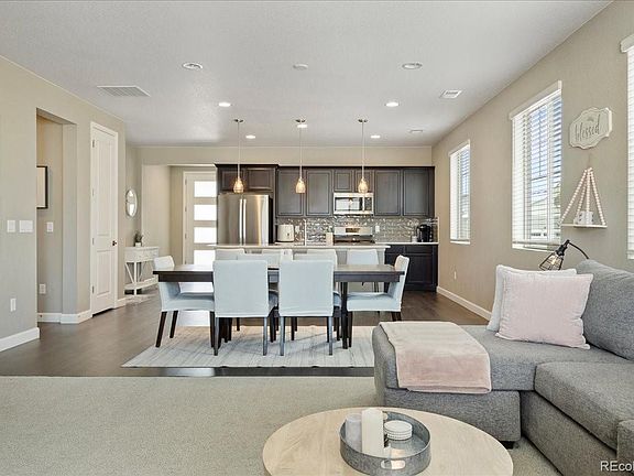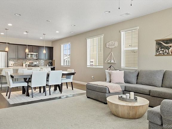 $3500 credit towards buyer closing costs or rate buy down with use of preferred lender!! Do not miss this exceptional chance to own a beautiful, near new, one level home in the sought-after Aurora Highlands community. Why go through the hassle of building when you can immediately move into a home that comes with PREMIUM FEATURES NO LONGER OFFERED BY THE BUILDER? This home features EXTRAS that would typically cost you more out of pocket, including FRONT AND REAR LANDSCAPING, FULL FENCING, COVERED BACK PATIO WITH RAILINGS AND STEPS, ALL APPLIANCES AND WINDOW COVERINGS. Just move in and enjoy! This stunning home is filled with thoughtful upgrades, such as CENTRAL MEET SLIDERS leading to the patio, GE appliances, quartz countertops, upgraded cabinets, beautiful backsplash, GAS FIREPLACE and 8 ft. doors throughout. You'll also love the DRY-WALLED GARAGE and versatile fourth bedroom. The home's layout is designed with comfort in mind, featuring a welcoming foyer and open-concept living, dining, and kitchen area. The peaceful primary bedroom, with spacious walk-in closet and ensuite bath, is thoughtfully located at the back of the home for ultimate privacy and quiet. Two additional bedrooms and a full bath are tucked to the side, while the fourth bedroom, positioned at the front, is also ideal for a home office or a quiet retreat. Enjoy the Colorado sunshine on your elevated, covered patio, which leads to a low-maintenance, fully fenced backyard. Located in the new and vibrant Aurora Highlands community, just one block from the nearest community park and within walking distance of the future beach club, pool, and 22 miles of walking and biking trails. Easy access to E-470 and a short drive to DIA, you'll love the convenience and beauty of this location. Don’t miss out on the chance to make this your home! Visit https://theaurorahighlands.com/ to learn more. Seller willing to consider concessions toward buyer rate buydown!