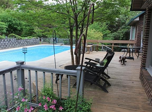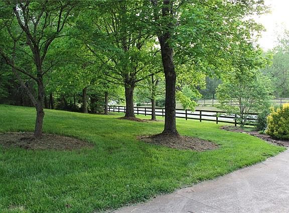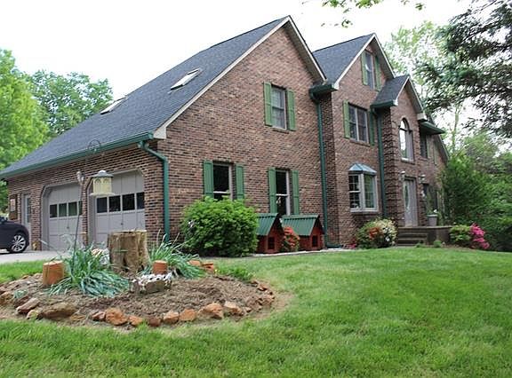 Nice Country Subdivision with room to roam. Secluded 4.69 Ac with wooded walking trails, Lrg Brick Home, separate Brick Detached Camper Garage, In Ground Pool w/ Diving Board. Bring your horse- it's allowed. Hardwood flrs throughout except for 2 bedrooms and tile in kitchen and baths. Dual Heat/Air; Upstrs 2013; dwnstrs 2017. Lovely Custom Cabinets in Kitchen with island, pull out pantry, double ovens, trash compactor, Granite Countertops. Master on Main + another Master upstrs; Total of 4 roomy bedrooms. 3rd floor attic space finished as nice office or playroom with spiral staircase. Full Basement with double walk out doors, lots of storage, shelving & workspace. Also nice wood stove in basement ducted to whole house as an alternate heat source if desired - will heat full house. Both work well. Fruit trees: 2 apple trees, Fig, blueberry, cherry, plum, Apricot, blackberry & muscadines.