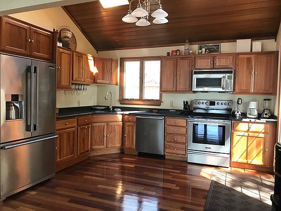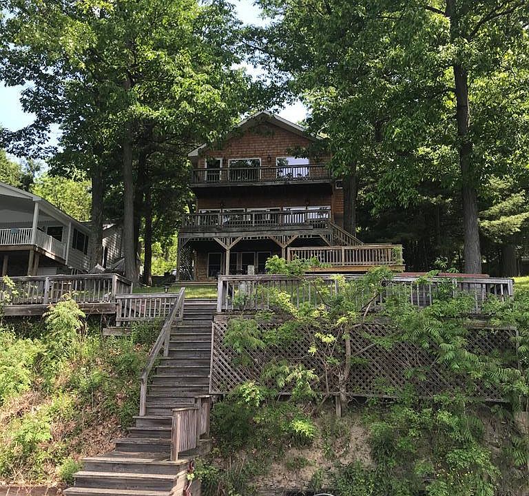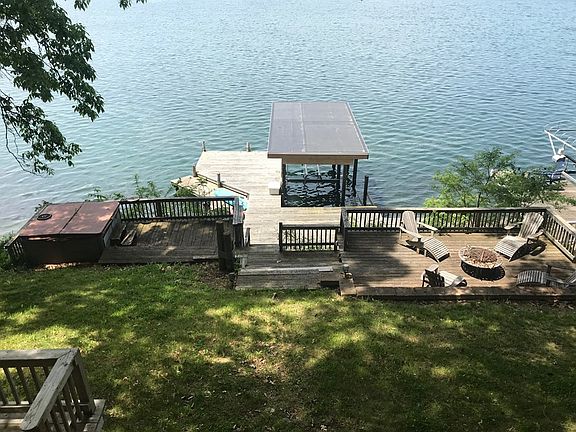 Cedar shake 2 story home is in move in condition and only minutes from Watkins Glen and Hector's active business corridor. Cherry floors throughout. The kitchen has cherry cabinetry, granite counter tops and vaulted ceiling with skylights. Dining area has fireplace, family room is cozy and comfortable. 1st floor bedroom, full bath with tile floors, large walk-in shower. 2nd level master bedroom suite with fireplace, vaulted ceilings, deck and large master bath. LL has bonus room, laundry rm and changing area, wine cellar too! Decks on each flr and yard deck w/hot tub. Big dock & new boat lift.
