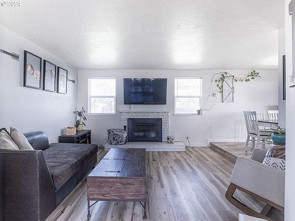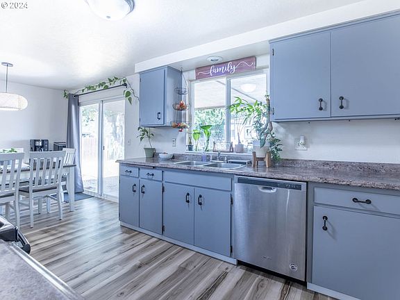 Ready-to-Move-In Home. This charming single-story residence is situated on a spacious.24-acre corner lot within a sought-after neighborhood. The bright living room showcases a cozy gas fireplace. The house features luxurious vinyl plank flooring and vinyl windows. A sliding door in the dining room leads to a covered patio. The expansive yard is ideal for hosting gatherings and gardening. It offers ample space for RV and boat parking. Relax outdoors throughout the year on the covered patio. The roof is relatively new, aged between 5-7 years. Conveniently located just a short 15-20 minute drive from the University of Oregon and downtown Eugene. Near excellent shopping, schools, and public transportation. Low taxes amounting to $2,302.00.