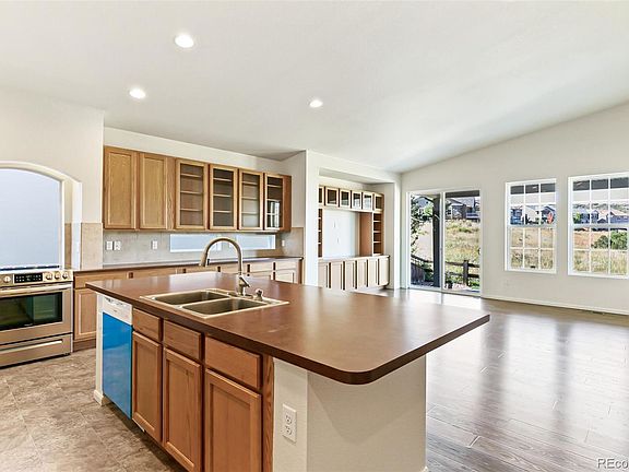 PRICE REDUCTION, DON'T MISS THIS OPPORTUNITY....Did I mention Location, Location, Location?? Backing to Open Space this ranch home has over 3,000 of finished s.f. with 6 bedrooms, 3 bathrooms and views of Bison Park, the School and the Beautiful Mountains all located within steps of Trails and the Greenbelt. Your main level has a Primary Suite with coved ceilings, 4 piece bath with large soaking tub and walk in closet along with 2 additional bedrooms, full bath, gourmet kitchen and great room. Don't forget to walk out on the covered back patio with "a park-like setting" and unobstructed views of the park, the school and the mountains. Moments from Ridgeline Open Space. This home is 100% move-in ready. No maintenance vinyl exterior and xeriscaped yard means you will have all the time you need to walk, bike, and play within steps of your front door. The basement was finished by the builder at the time of the build in 2012. There is a second primary bedroom downstairs and 2 more bedrooms plus a LARGE family room and full bath. The Seller has just painted the inside a nice crisp and clean white, so you have a blank slate to work with. The home also boasts a whole home air purifier and humidifier on the HVAC system. Why wait for a new build when this home has it all and is ready for you to move-in on the day of closing. Just minutes from the Famous Downtown Castle Rock Events, only minutes to Phillips S Miller Park (The MAC) which has free concerts through the summer, a full recreational center and zip line. PLUS Easy Access......only a few miles from I-25 highway access to get anywhere you want to be into Denver or Colorado Springs. Don't miss out!!